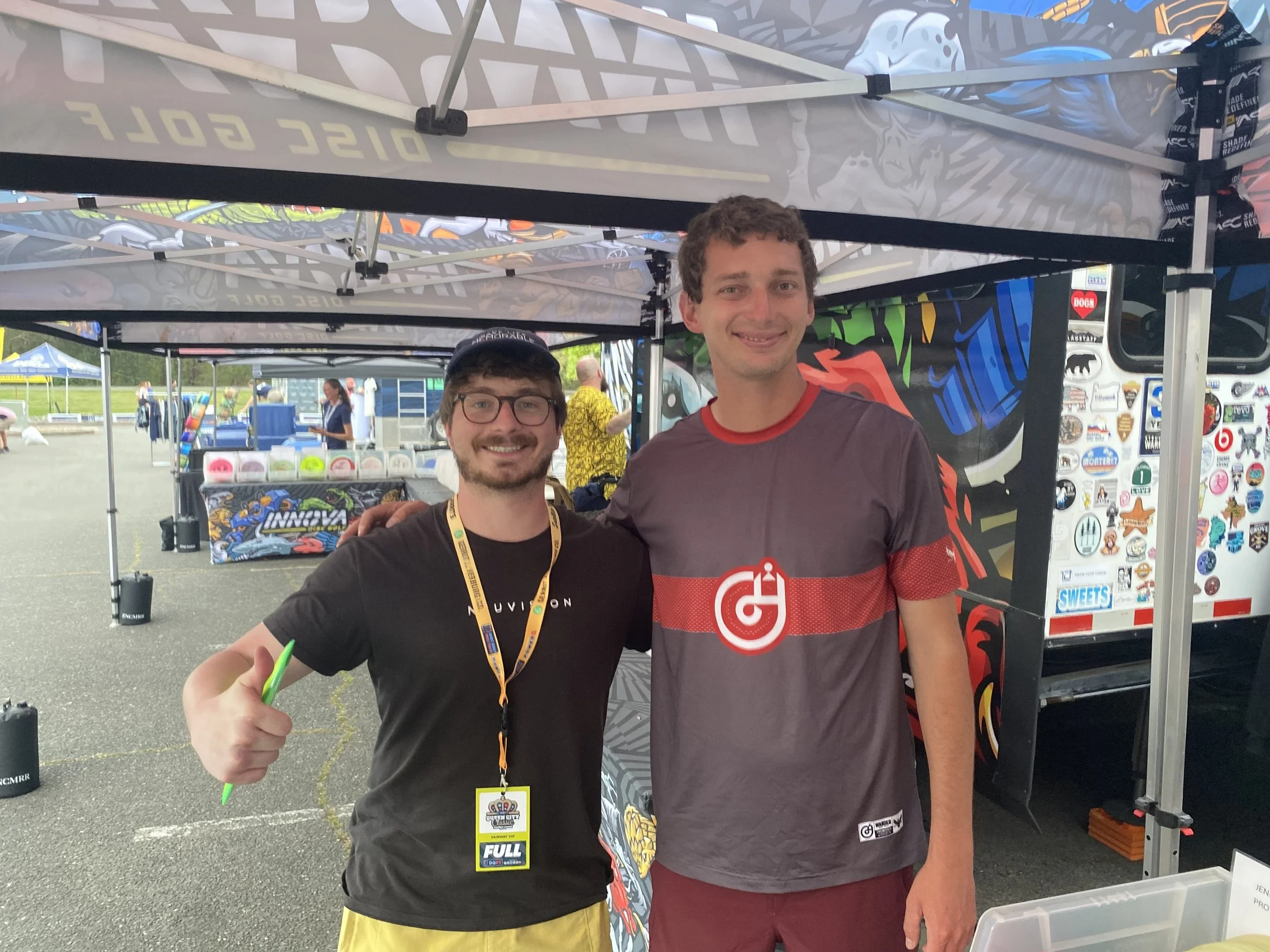 That’s Isaac flipping the disc. Conversations with world champion players? Check.