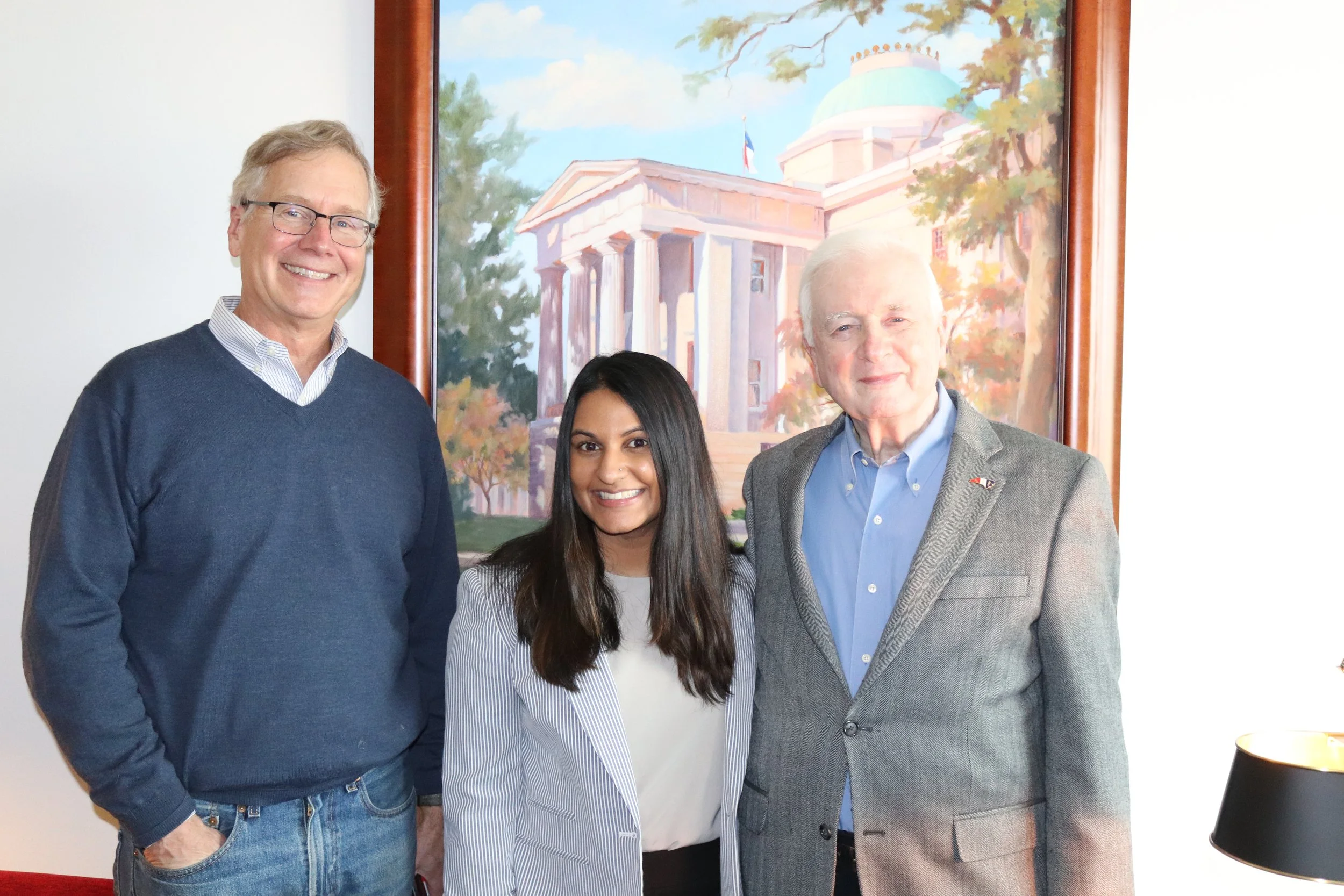 Then Shevani arrived. In seconds 85-year-old Jim Hunt became four-time Governor force of nature James B. Hunt Jr. again. We snapped a photo, then Gov. Hunt faced her, gripped her left tricep with his right hand, and, for the next twenty minutes, focused his entire being on this young person. He extracted her entire life story. Then he told her why her specific skills and background were so important. Why there was no better place to apply them than in North Carolina. And then he fixed his eyes on her and told her there was nothing more important she could do with her life than “work your head off” to make the world a better place. And I bet she will.